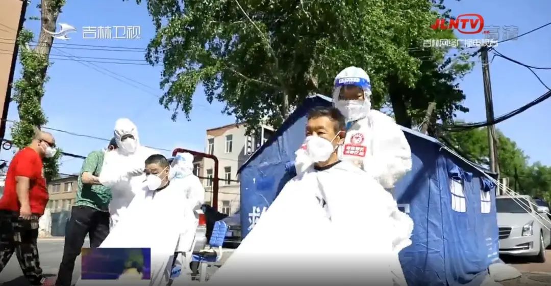 一大早,长春市朝阳区刘健军敬老爱心志愿者联合会党支部的志愿者们就来到明德路防疫卡点,免费为附近的居民理发。