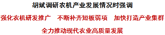 胡斌强调,发展现代农机产业,对于保障国家粮食安全、推动“三产”融合发展、促进农民增收致富具有重要意义。要倒排时间、加快推进,围绕农机研发制造应用一体化建设,持续提升大马力拖拉机、水稻有序抛秧机等推广力度,不断提高农业生产效率、降低种植成本。要解放思想、创新发展,聚焦粮食生产、肉牛养殖、棚膜经济和庭院经济等领域,以市场化、集成化为导向,加大农机装备引进、研发和创新力度,努力突破更多关键技术,加快成立销售公司,推动农机装备产业转型升级,全力开拓市场、赢得先机。要完善品系、延伸链条,加快推动产业融合、资源互补,招引上下游配套企业,不断强链延链补链,形成集聚效益。要提格统筹、破解问题,充分发挥企业“知心人”作用,加强沟通交流,落实惠企政策,精准对接需求,拉出问题清单,逐一推动解决,助力企业做大做强。要全面清查、保障要素,摸清现有闲置厂房、土地等资源底数,依法依规加快盘活闲置资源、提高土地使用效率,为现代农机产业发展提供充足要素保障。