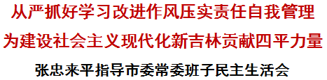 张忠强调,开好民主生活会是严肃党内政治生活的重要内容,也是市委班子带头学习贯彻党的二十大精神的务实举措。要从严抓好学习,坚持学思用贯通,知信行统一,真正做到用党的创新理论武装头脑,把学习成果转化为建设社会主义现代化新吉林的思想自觉和行动自觉。要从严改进作风,时刻以严新细实的标准要求自己,杜绝急功近利、好大喜功,不搞形式主义、官僚主义,实打实把党的二十大各项战略部署和省委要求抓到底、抓到位。要从严压实责任,带头健全全面从严治党体系,完善主责监督和专责监督体系,真正构建各负其责、统筹协调的管党治党责任格局。要从严自我管理,时刻保持清醒头脑,做政治上的明白人,不断营造风清气正的良好政治生态。